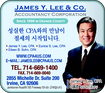 | 이용준공인회계사 | ☎ (714)669-1400 |  | | JAMES Y.LEE.& CO. | | 2855 Michelle Dr. #200 IRVINE CA 92606 | |